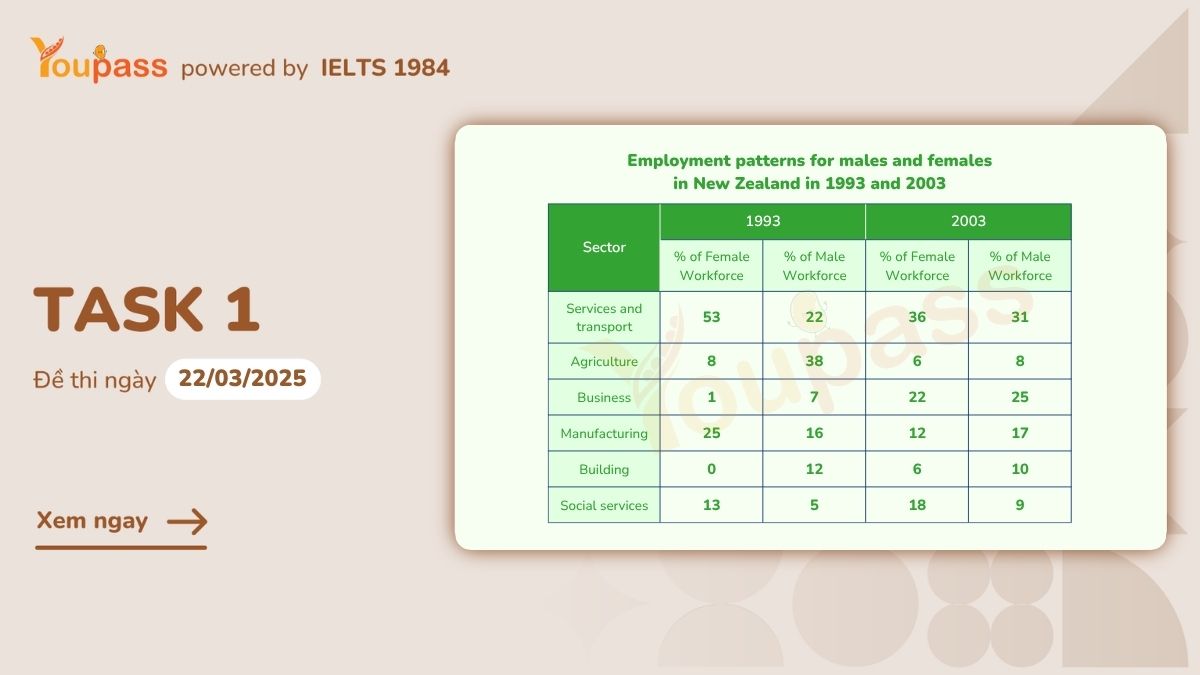 Giải đề IELTS Writing Task 1 đề Percentage of Male and Female Jobs in New Zealand - Dạng Table