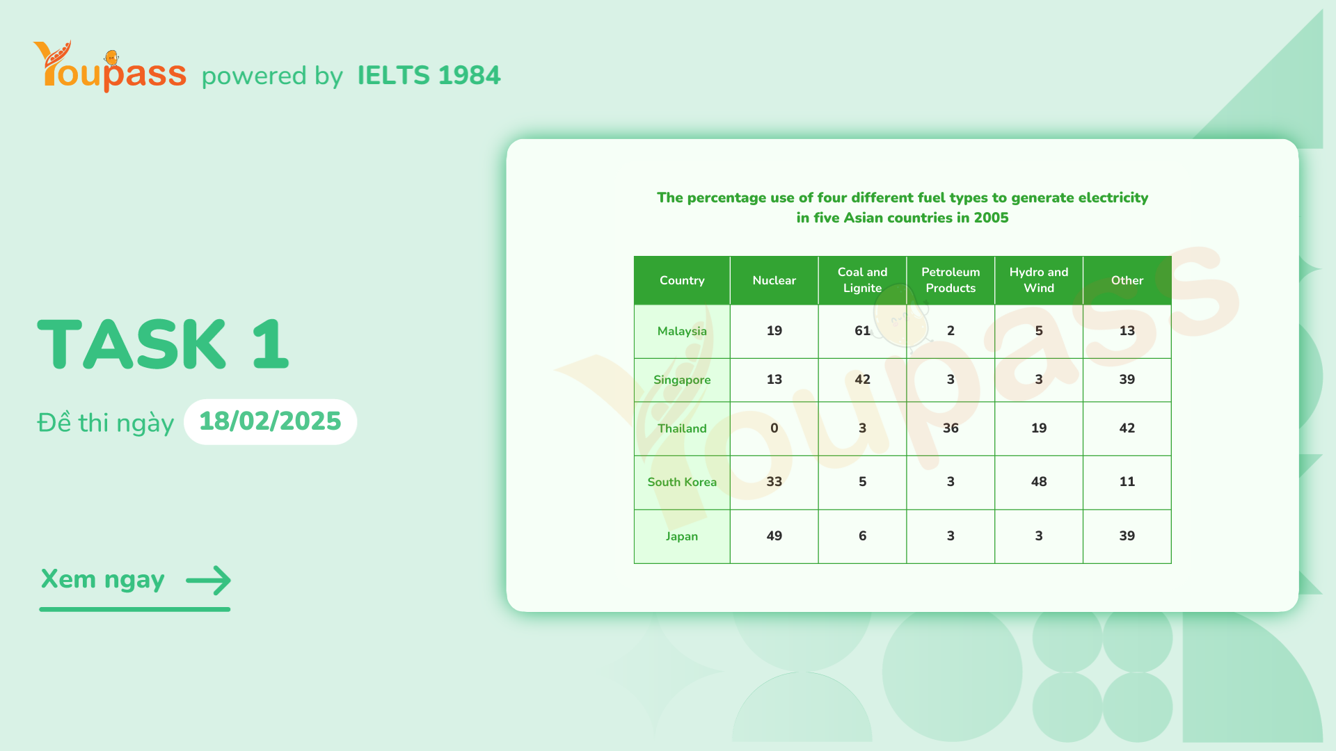 Giải đề IELTS Writing Task 1 Fuel Types Used for Electricity - Dạng Table